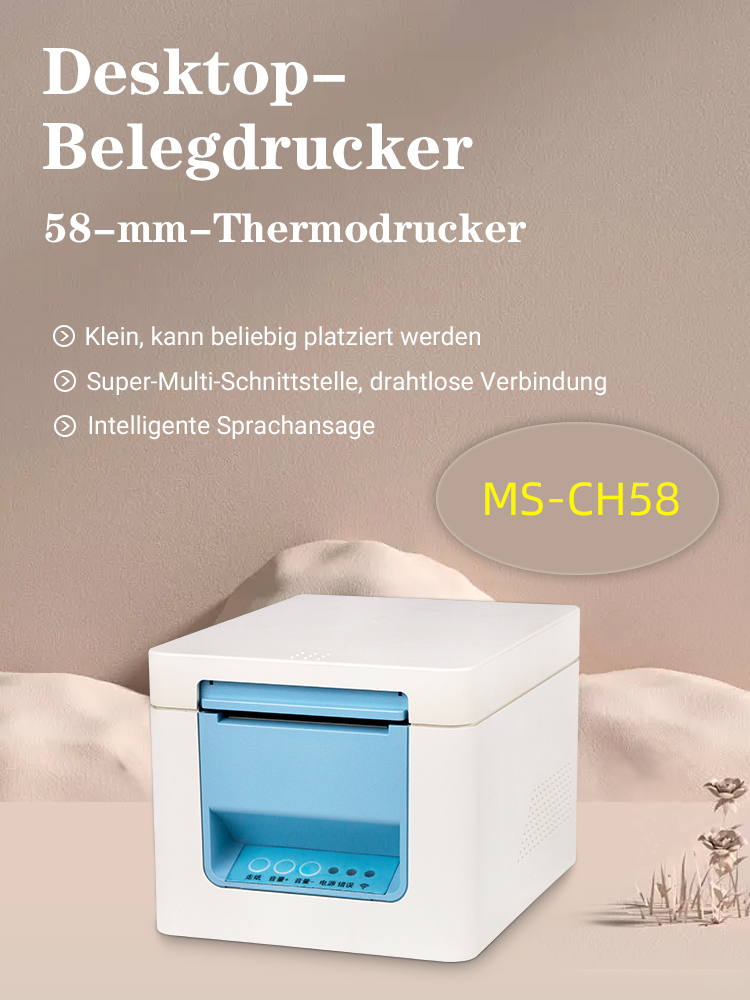 Der Thermobondrucker MS-CH58 für Kassensysteme ist äußerst vielseitig und erfüllt unterschiedlichste Geschäftsanforderungen. Er ist zwar als kompakter 58-mm-Bondrucker optimiert, bietet aber dank seiner robusten Anschlussmöglichkeiten weit mehr. Er kann problemlos als fest installierter Thermobondrucker für den Tresen oder als mobiler Bluetooth-Bondrucker für die Tischbestellung in Restaurants oder an Marktständen eingesetzt werden. Für Unternehmen, die ein größeres Format benötigen, ist die Kerntechnologie auch als Bluetooth-Thermodrucker erhältlich. So ist für jede Bon- und Etikettierungsanforderung die passende Lösung verfügbar.