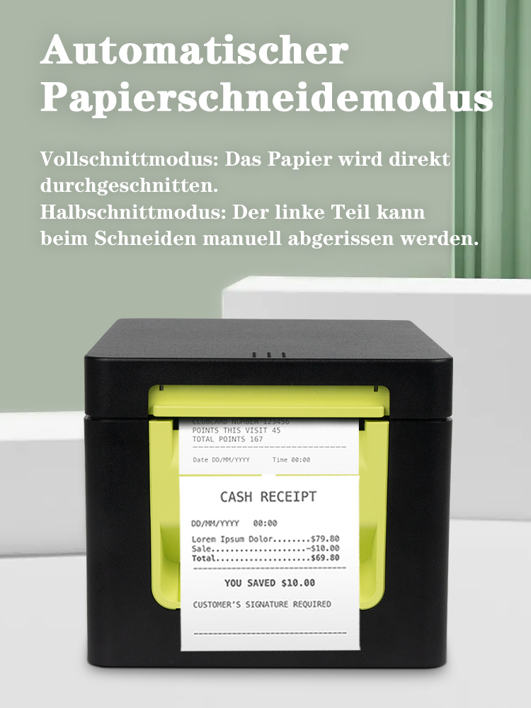 Dieser robuste und benutzerfreundliche Bluetooth-Bondrucker ist eine kluge Investition für die Zukunft. Der MS-CH58 ist nicht einfach nur eine weitere Alternative zu 80-mm-Thermobondruckern, sondern ein speziell entwickelter, robuster Thermobondrucker für Kassensysteme, der für den täglichen Einsatz in anspruchsvollen Umgebungen konzipiert wurde. Die Schnittmethode ist individuell anpassbar (vollständiges, halbes oder manuelles Abreißen) und bietet Ihnen somit volle Kontrolle. Der MS-CH58 arbeitet effizient in einem breiten Temperaturbereich und benötigt praktisch keine tägliche Wartung. Er liefert Tag für Tag eine stabile Leistung und sorgt dafür, dass Ihr Unternehmen reibungslos weiterläuft.
