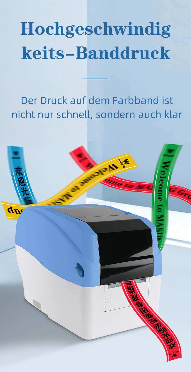 Breite Materialkompatibilität: Diese vielseitige Farbbanddruckmaschine unterstützt eine große, einstellbare Papierbreite und ist mit verschiedenen Farbbändern kompatibel. Dank dieser Flexibilität eignet sie sich ideal für unzählige Anwendungen und ermöglicht das Bedrucken von Materialien für Kleidungsetiketten, Geschenkpapier und industrielle Produktverpackungen.