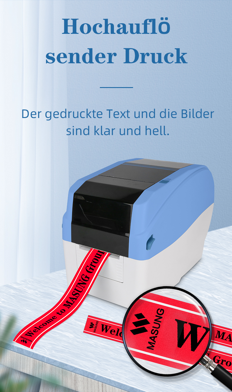 Brillante HD-Ausgabe:Erleben Sie mit diesem Textilbanddrucker dank einer Auflösung von 300 DPI eine außergewöhnliche Druckqualität Wärmeübertragungstechnologie Gewährleistet gestochen scharfen, wischfesten Text und brillante Grafiken oder Barcodes auf allen Satinbändern und Etikettenmaterialien – von Blumenbändern bis hin zu Kleidungsetiketten.