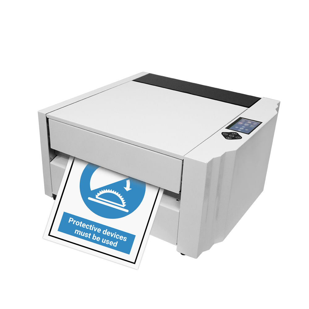 Dieser professionelle Großformat-Thermotransferdrucker mit Zweifarbentechnologie wurde speziell für die Erstellung von Schildern und Etiketten entwickelt. Seine Hauptfunktion besteht in der Produktion langlebiger, hochwertiger Sicherheitsschilder und -etiketten mit dem Komfort einer automatischen Papierschneidefunktion. Ein wichtiges Merkmal der Benutzeroberfläche ist der integrierte 4,3-Zoll-Touchscreen, der eine direkte Steuerung und Bedienung des Geräts ermöglicht.